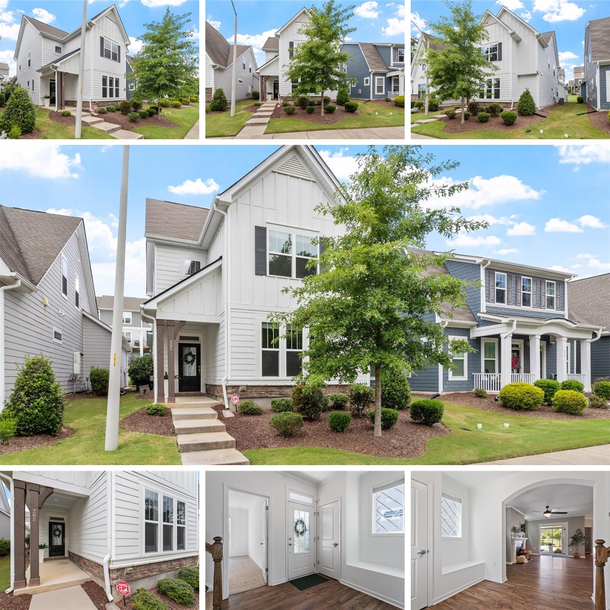 Beautifully maintained, impeccably clean home located in the highly desirable 2018 Market community. Move in ready! Open floor plan with abundant natural light and numerous builder upgrades. The first floor great room features a fireplace with electrical/HDMI connectivity, perfect for a wall mounted television, as well as a lighted ceiling fan. Oversized kitchen is a chef’s dream with upgraded white cabinetry, expansive countertops, two pantries, featured glass cabinetry doors to display fine crystal or decor, new dishwasher, and a large island perfect for cooking and serving. Dining area features bamboo shades and chair railing. Mudroom includes a coat closet and leads to the 2-car garage. The first floor also offers a large bedroom with an attached full bathroom with walk in shower. This bedroom would work perfectly as an in-law suite, guest room, exercise room, home office, playroom, or first floor bedroom. The second floor oversized owner’s suite features a large walk in closet, ceiling fan, and attached bathroom. Owner’s suite bathroom includes a dual vanity, walk in shower, and a large linen closet for extra storage. Two additional bedrooms on the second floor are prewired for ceiling fans. A full hall bathroom offers a shower and bathtub combination. The laundry room is located on the second floor for your convenience, beautifully styled with Magnolia by Joanna Gaines wallpapering. Step outside to the fully fenced backyard and relax under the covered porch that offers natural privacy with trellised jasmine. New Vita Garden raised beds are perfect for vegetable, herb, or flower gardening. Home is wired with CPI home security equipment. The HOA takes care of all landscaping and lawn care, and offers access to a community pool, clubhouse, playground, and dog park. Walkable neighborhood with sidewalks connecting to greenway paths, and is just steps from grocery shopping and restaurants. Walkable to zoned elementary and middle school as well as Downtown Holly Springs which offers numerous dining and shopping experiences. Easy access to the newly extended 540, Bass Lake, and Womble Park.